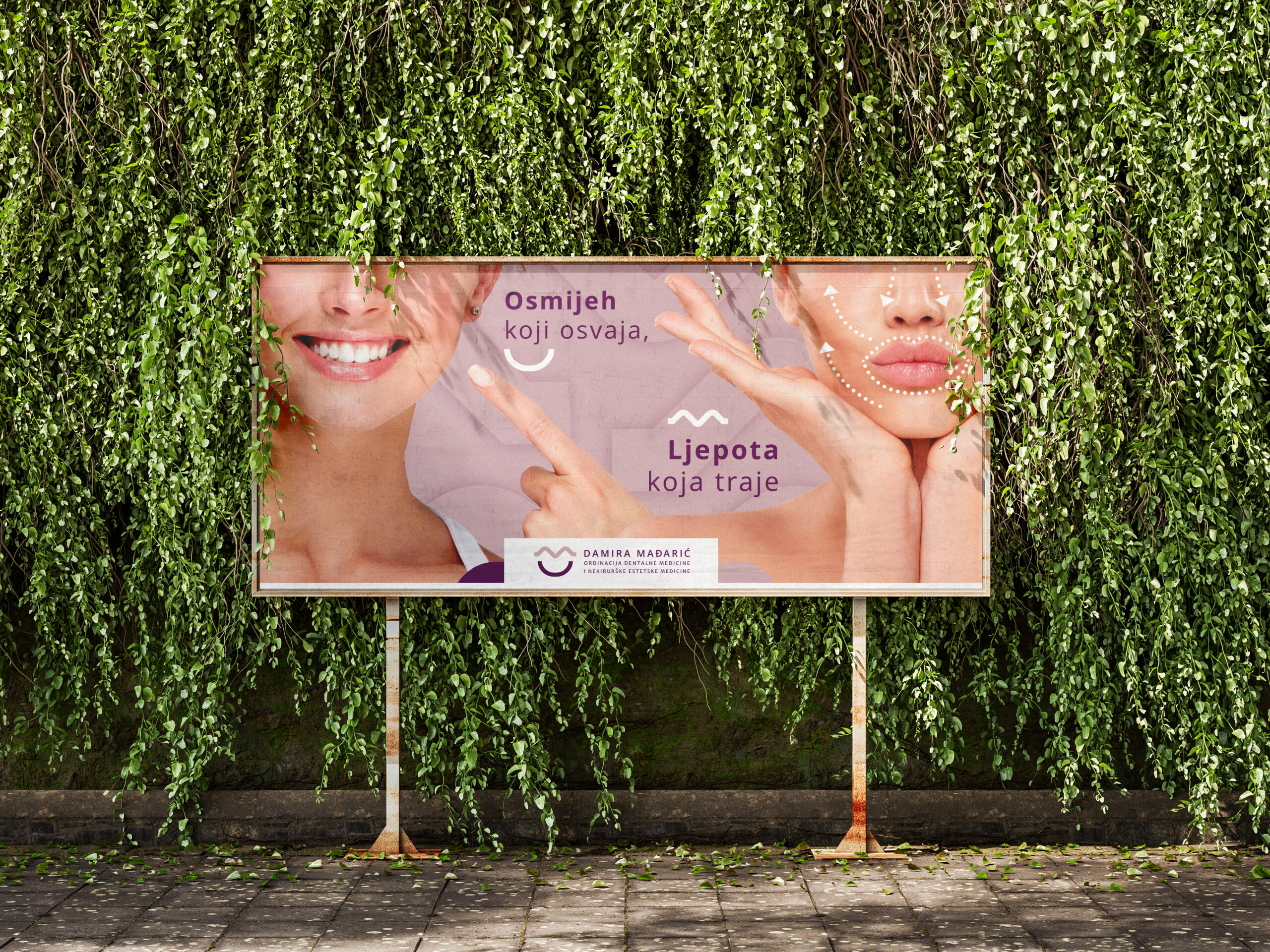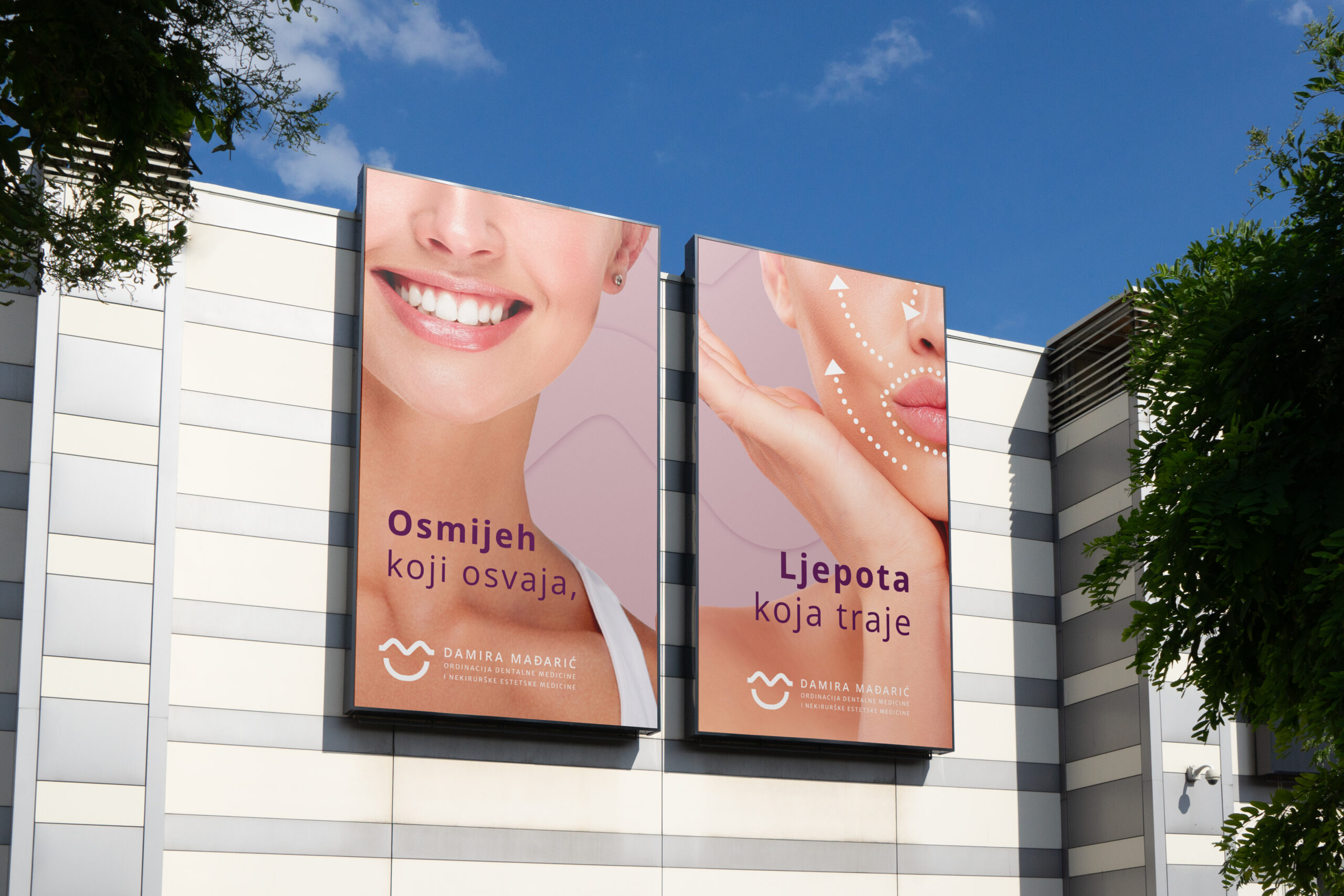 Ordinacija Damire Mađarić, koja pod jednim brendom objedinjuje dentalne i estetske usluge, trebala je vizualni identitet koji jasno komunicira obje djelatnosti – bez gubitka fokusa, bez vizualnog konflikta i bez potrebe da se bira strana.